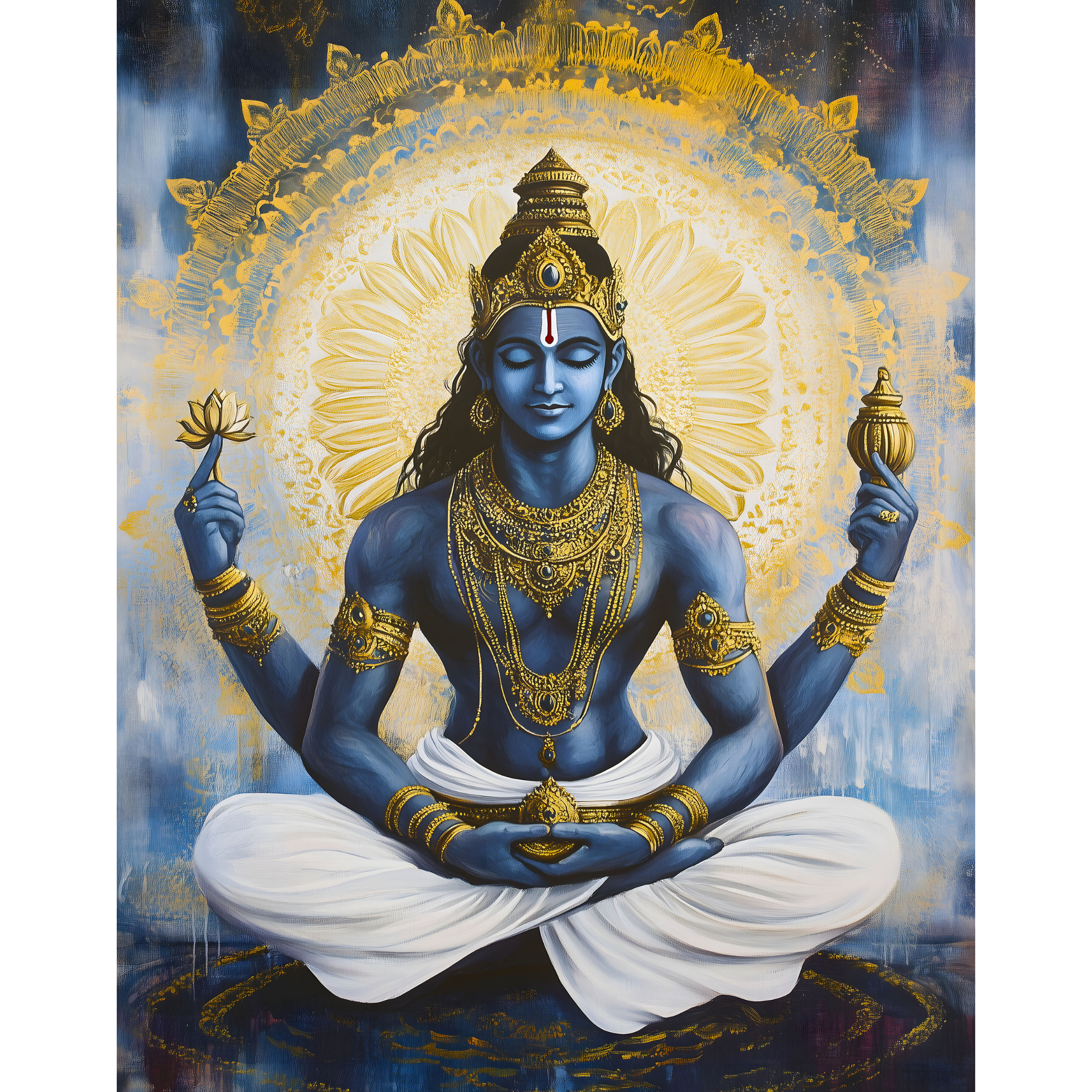 🕉️ Depicts Lord Vishnu with divine aura and spiritual significance